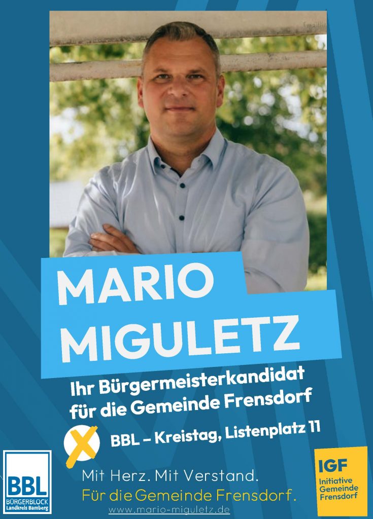 Mein Name ist Mario Miguletz, ich bin 46 Jahre alt, verheiratet und tief mit Frensdorf verbunden – hier geboren, aufgewachsen und fest in unserer Gemeinde verwurzelt.